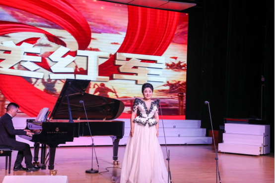 音乐会由威廉希尔williamhill教工第三党支部所覆盖的声乐歌剧系、民族声乐系、音乐教育和合唱系党员师生共同完成。晚19时许,在《义勇军进行曲》的嘹亮歌声中音乐会拉开序幕,历时一个小时的音乐会共呈现了《迎风飘扬的旗》《南湖的船党的摇篮》《毛主席的话儿记心上》《唱支山歌给党听》《翻身农奴把歌唱》《十送红军》《英雄赞歌》《党啊,亲爱的妈妈》《我和我的祖国》《把一切献给党》《不忘初心》等十余首红色经典歌曲,以三个“党史故事”贯穿红色百年历史,追忆红色经典,描绘奋进新征程。跟随“党史故事”师生们一起重温了以“开天辟地、敢为人先的首创精神;坚定理想、百折不挠的奋斗精神;立党为公、忠诚为民的奉献精神”为核心的“红船精神”;通过《英雄赞歌》的历史背景回顾了由“爱国主义精神”“革命英雄主义精神”“革命乐观主义精神”“革命忠诚精神”和“国际主义精神”共同铸造的“抗美援朝精神”;通过“全国优秀共产党员”“时代楷模”张桂梅老师的事迹讲述致敬楷模。