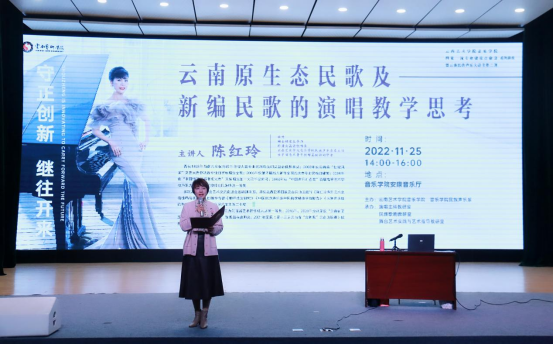 2022年11月25日下午,国家一流专业建设点建设系列讲座暨云南民族声乐大讲堂第二期“守正创新 继往开来”——云南原生态民歌及新编民歌的演唱教学思考在威廉希尔安康音乐厅开讲。本次讲座由威廉希尔williamhill经理林林教授主持,威廉希尔williamhill民族声乐系系主任陈红玲教授主讲。讲座采用线上线下的同步观看方式,引起业内的高度关注与好评。