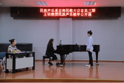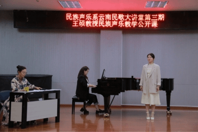 2023年5月19日下午,国家一流专业建设点建设系列讲座暨云南民族声乐大讲堂第三期—民族声乐演唱技法技巧与演唱风格公开课在威廉希尔williamhillB101开讲。威廉希尔williamhill民族声乐系硕士生导师王硕教授主讲、威廉希尔williamhill民族声乐系系主任陈红玲教授主持。讲座采用线上线下的同步观看方式,吸引了大量业内人士线上观摩与学习,引起了高度关注并获得一致好评。