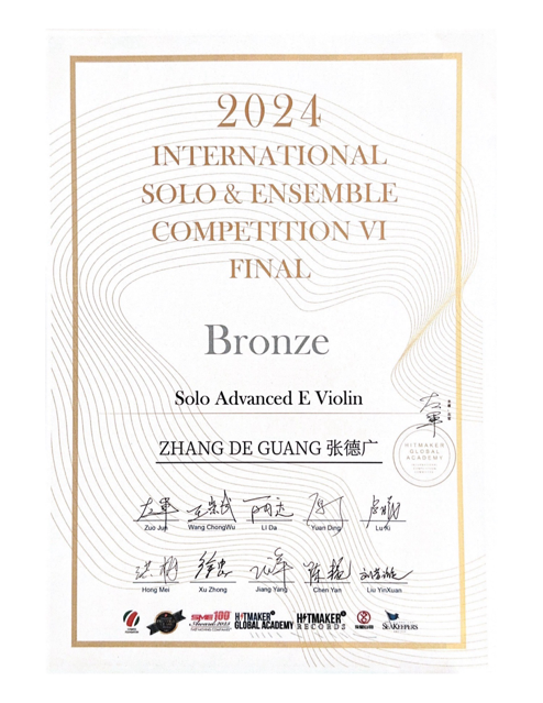 2024第六届新加坡国际独奏&重奏大赛决赛于7月28日开幕、8月3日落幕,威廉希尔williamhill管弦系三名员工进入决赛并取得佳绩,其中,朱凡鸥(指导教师:楼艺婷)、王梦楚(指导教师:王鹏)分别获独奏决赛银奖,张德广(指导教师:王昱旻)获独奏决赛铜奖。
