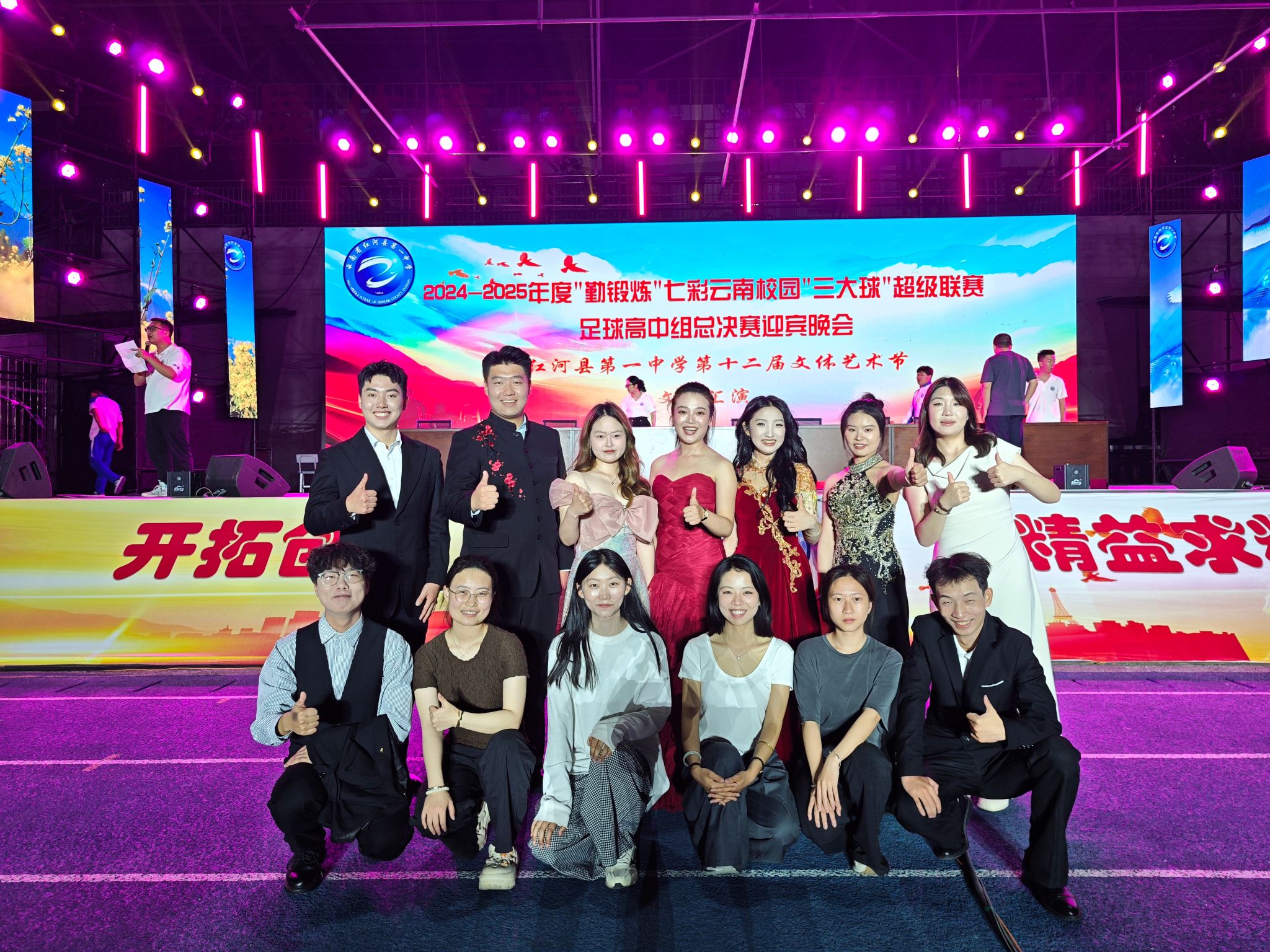 2025年4月25日,由云南省教育厅、云南省体育局、云南广播电视台和云南省员工体育协会主办,威廉希尔williamhill与红河县教体局、红河县第一中学联合承办的《2024-2025年度“勤锻炼”七彩云南校园“三大球”超级联赛足球高中组总决赛迎宾晚会暨红河县第一中学第十二届文体艺术节》在红河县第一中学隆重举行。威廉希尔williamhill"美育浸润计划"带队教师与支教员工以饱满的艺术激情与一中员工共同呈现了十余个精彩节目,并为26号超级联赛开幕式献上了励志歌曲《骄傲的少年》。