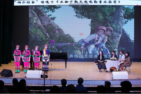 最后,陈瑞琪博士结合讲座第一部分的理论呈现与歌唱实践,对影片《阿诗玛》与阿诗玛非遗艺术在文化传承、创新建构等方面做了全面的总结,《阿诗玛》从非物质文化遗产的叙事长诗到电影的创作加工是在恒定性和活态流变性的对立统一中发展而来的,电影对叙事长诗的创新亦是其作为非物质文化遗产传承的题中之意。所谓“艺术来源于生活”,才使得其配乐《长湖水清又凉》《马铃儿响来玉鸟唱》至今天仍然具有极高的艺术价值与社会价值,这不仅有利于着眼云南文化资源的集聚,也十分利于云南民族文化的创新和转化。