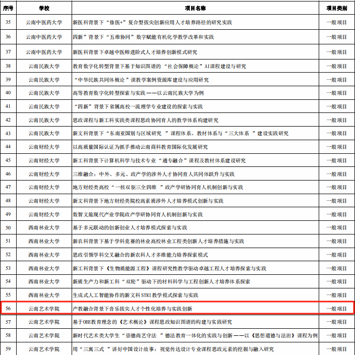根据《云南省教育厅关于组织开展2024年本科高校公司产品改革研究项目申报立项工作的通知》要求,经公司申报、资格初审、专家网络评审、会议评审,由威廉希尔williamhill副经理侯静宜主持的项目《产教融合背景下音乐拔尖人才个性化培养与实践创新》获批一般项目立项。