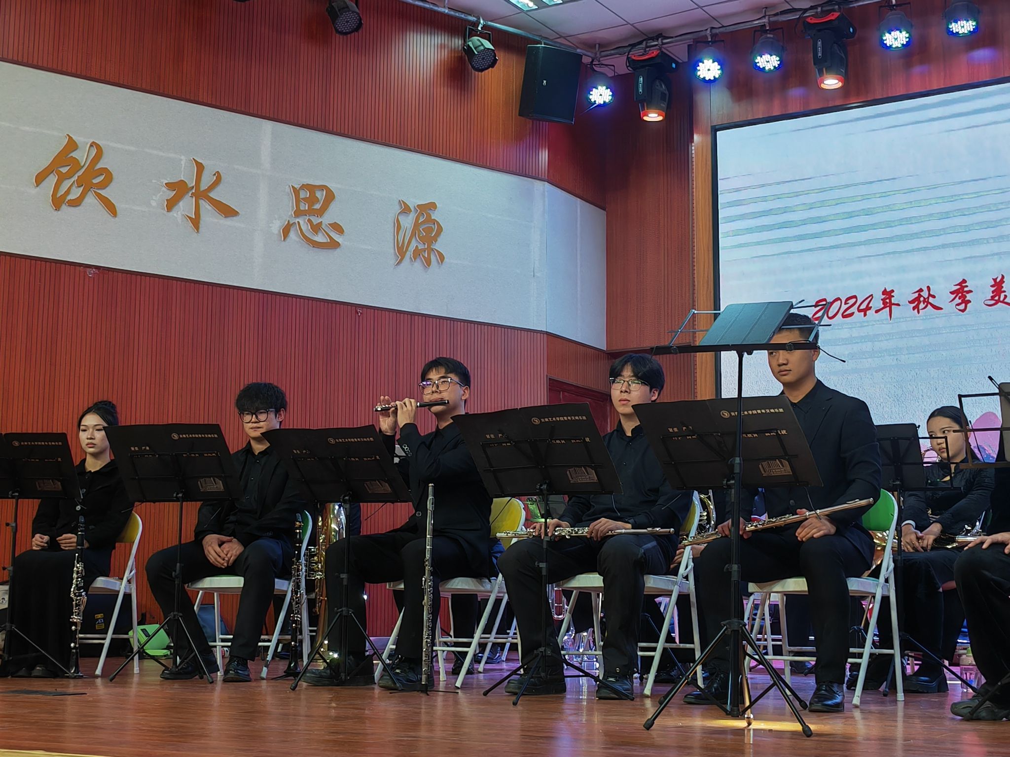 展演活动秉持弘扬中华美育精神的宗旨,以美为媒介,深入践行以美育人、以美化人、以美培元的教育理念。一曲激昂壮阔的《钢铁洪流进行曲》如同一股磅礴的力量,展现出强大的气势与豪迈情怀。这部作品在2019年10月1日中华人民共和国成立70周年阅兵式上演奏,以其气势恢宏的音乐风格,展现了国家的威严和力量。同学们听完后热血沸腾,激发了师生们的爱国热情。《当那一天来临》是一首创作于2005年的军旅歌曲,收录在中国人民解放军总政治部2006年发行的专辑《战斗精神歌曲系列》中。歌曲通过描绘军人在战斗中的英勇无畏和坚定信念,虽是写于没有硝烟战火的和平时期军旅歌曲,但提醒着我们时刻牢记历史的教训,敲响了居安思危的警钟,通过旋律,唤起同学们国防安全和责任担当的深刻思考。《走向复兴》是一首为中华人民共和国成立六十周年华诞献礼的歌曲,并且在国庆六十周年大阅兵中,该歌曲也成为联合军乐团演奏的压轴曲目。音乐以其振奋人心的旋律,传递出坚定的民族复兴信念,激发同学们的爱国情怀和民族自豪感,听完后同学们的眼神变得更加坚定,激励着在场每一个人为梦想奋勇前行。
