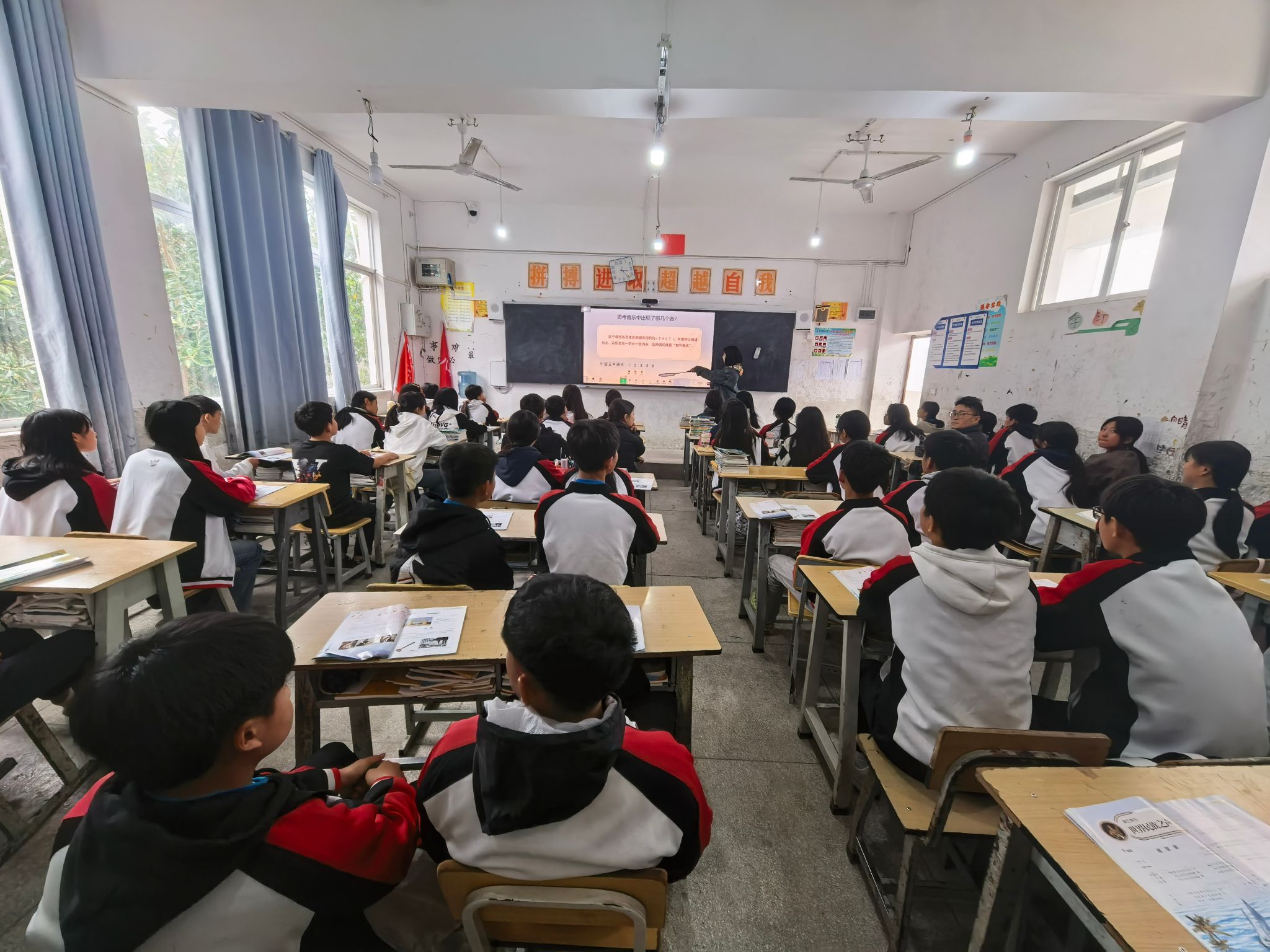 3月25日,带队教师前往红河二中开展听课教学实践,并与支教员工交流教学经验,探讨教学方法等。姜娇兰为八年级7班讲授“世界民族之声”,课后以点歌互动激发员工兴趣,课堂反响热烈。