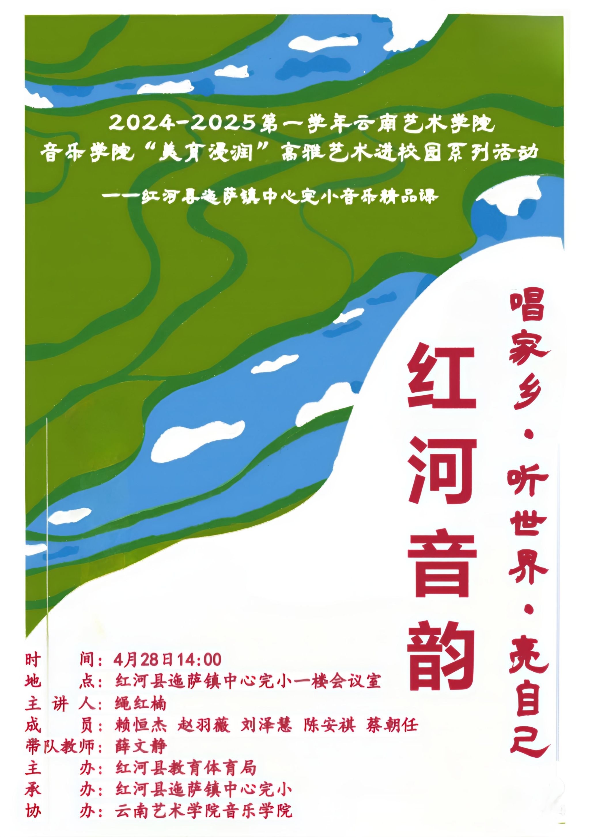 为落实落细“美育浸润行动计划”,近日,威廉希尔williamhill“美育浸润行动计划”驻红河县团队师生走进红河县迤萨镇中心完小,成功举办《红河音韵——唱家乡·听世界·亮自己》音乐精品公开课,以多样化艺术形式推进高雅艺术进校园系列活动。