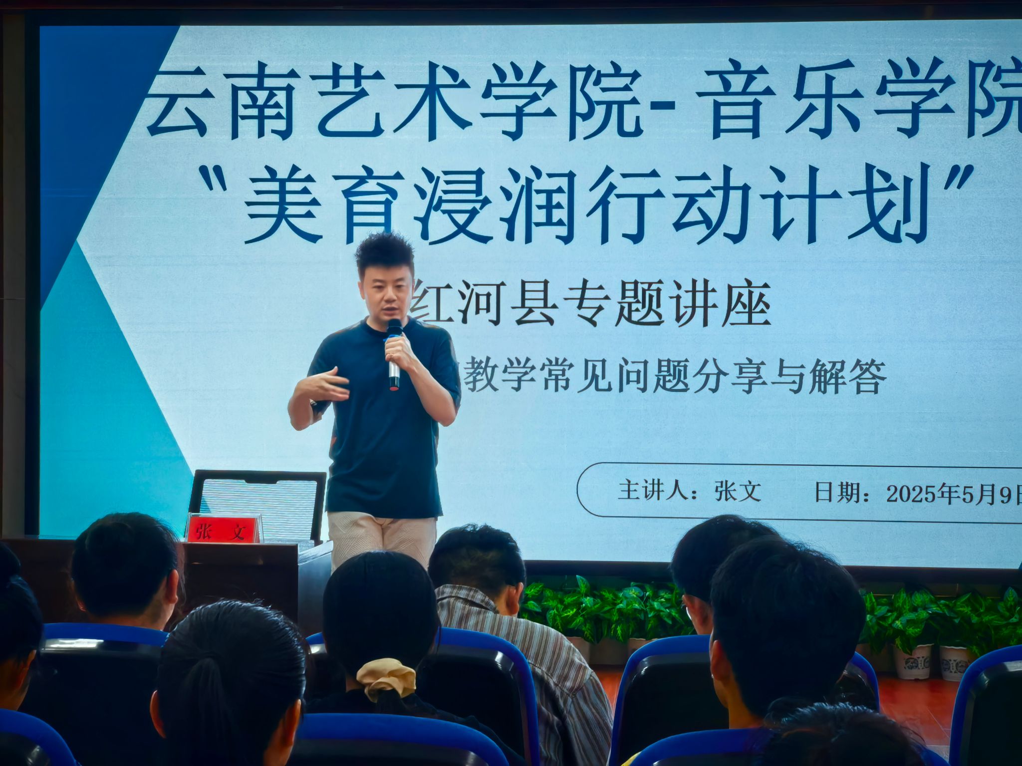 为认真贯彻全省教育工作会议精神,落实落细美育浸润行动计划,2025年5月10日,威廉希尔williamhill陈红玲教授、张文博士到红河县开展“美育浸润行动”音乐教师能力提升培训。本次美育专题培训由红河县教育体育局与威廉希尔williamhill联合举办。