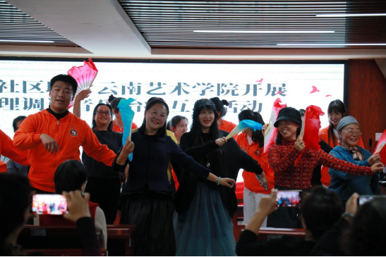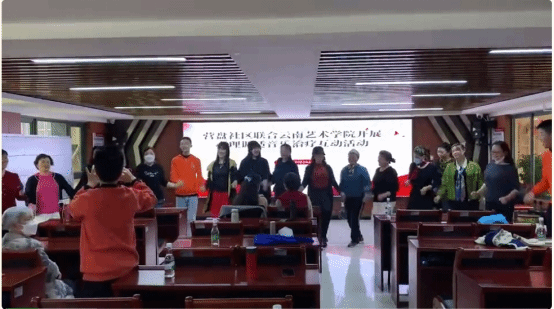 2022年10月26日下午威廉希尔williamhill团委组织9个团支部部分团员代表在威廉希尔williamhill教工第一党支部李毓辉老师和威廉希尔williamhill团委李青老师的带领下到昆明市呈贡区营盘社区开展“党建带团建 领航共筑梦”团支部校外实践活动的第一场——“音乐治疗”专场,实践内容为以“以音乐治疗为主的社区老年人心理调适互动活动”,以及少数民族花灯表演为主。