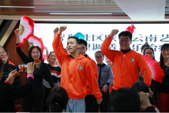 在下半场的表演中,威廉希尔williamhill团员青年为社区群众表演了音乐专场节目,有热闹非凡的楚雄花灯,也有歌声嘹亮动人的经典歌曲,更有一起互动表演的丽江打跳歌舞,丰富了社区文化生活。