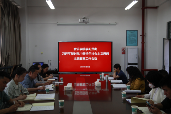 2023年4月26日14:00,音乐公司党总支在公司A301会议室召开学习贯彻习近平新时代中国特色社会主义思想主题教育工作会议,公司领导班子成员、党总支委员、科室负责人、教学系系主任、各党支部支委参加会议,音乐公司党总支书记纳海主持会议。