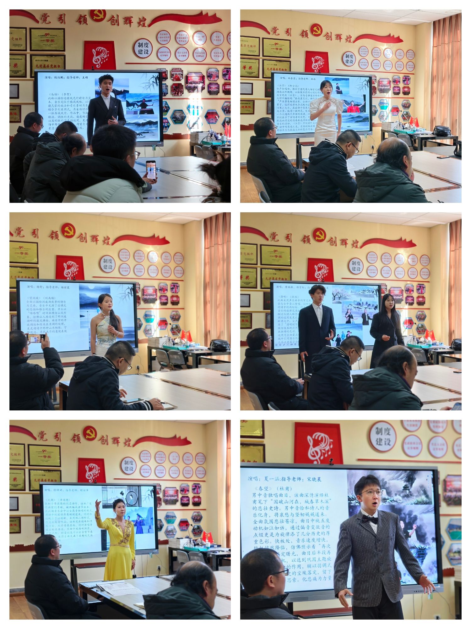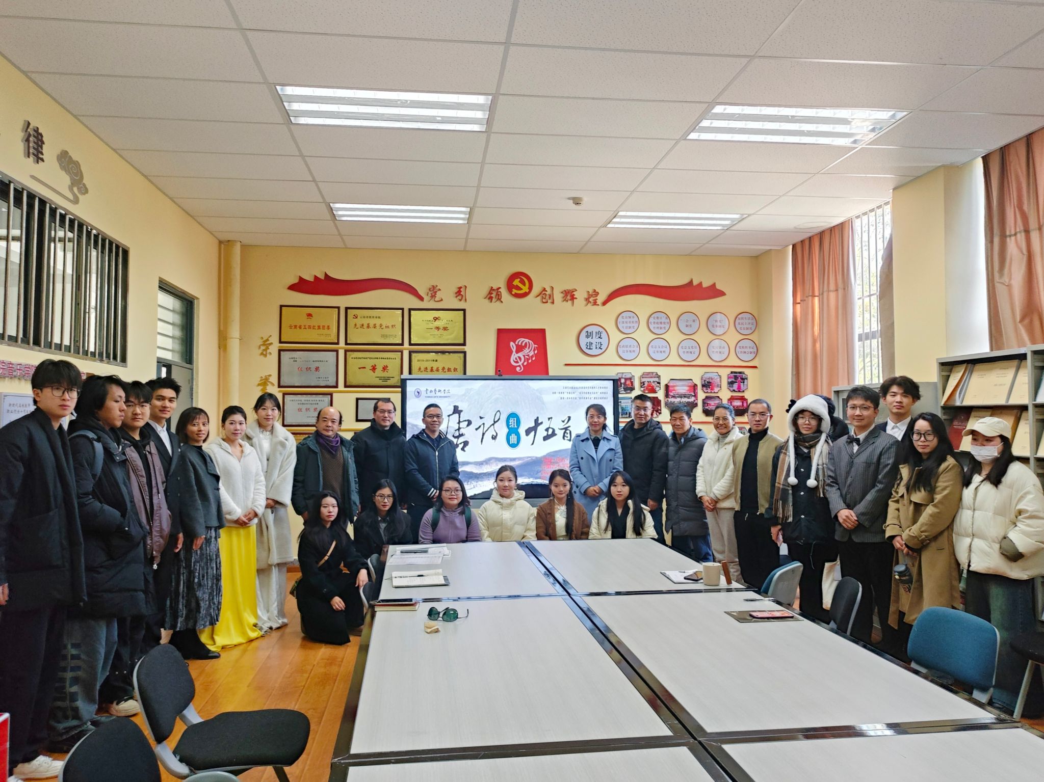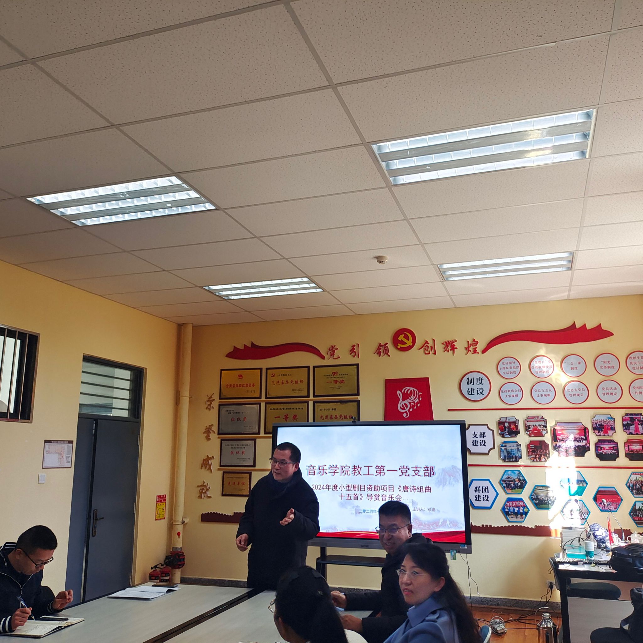 随后,支部党员教师邓波同志借助云南艺术基金2023年度青年艺术创作人才资助项目和国家艺术基金2024年度(一般项目)小型剧目资助项目——《唐诗组曲十五首》,采用音乐导赏的方式进行具象化的“以美育人,以文化人”。通过导赏,支部党员们纷纷表示,今后要不断提升自我的文化修养,积极传承中华优秀传统文化,开拓进取,勇于创新,投身音乐艺术教育事业,为中华民族伟大复兴贡献自己的力量。