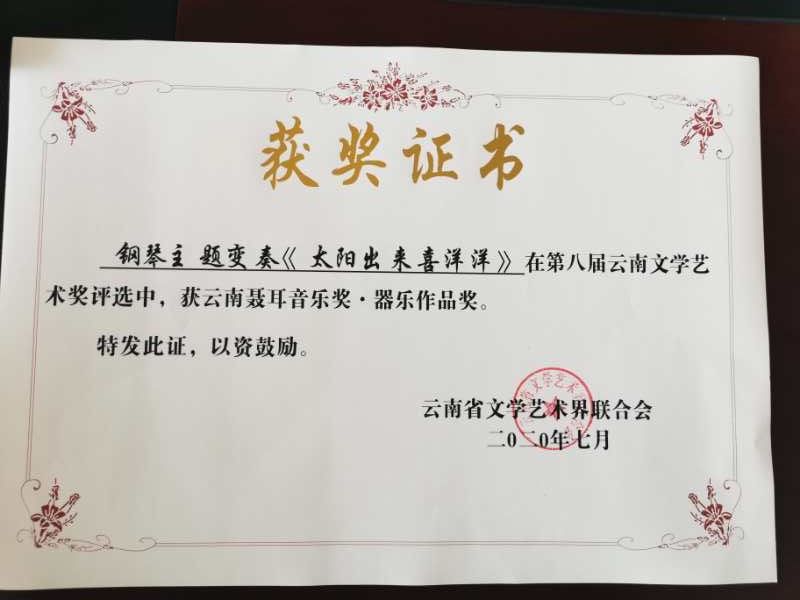 威廉希尔williamhill作曲系教授吴渝林、业原作曲的电影故事片《杜鹃花红》荣获第八届云南文学艺术奖云南电影奖作品奖,作曲系付鹏老师作品弦乐四重奏《蛰之启》,作曲系研究生罗玉兰作品钢琴主题变奏《太阳出来喜洋洋》(指导教师田建华),囯乐系滇鼓打击乐《逐日》(作曲:赖钧霖)获得第八届云南文学艺术奖云南聂耳音乐奖器乐作品奖。
