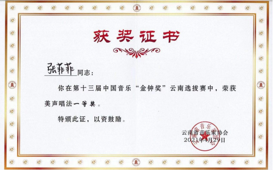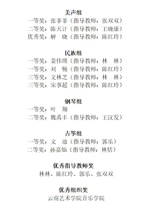 在本次选拔赛中,我校师生取得了令人满意的优秀成绩,充分展现出了公司师生优秀的专业素养和不断进取的精神风貌,同时也是对本校办学水平的一次全面展示和充分肯定。在此祝贺所有入选第十三届音乐金钟奖云南选拔赛的师生取得佳绩,预祝在接下来的比赛中砥砺前行,再创佳绩,载誉归来!