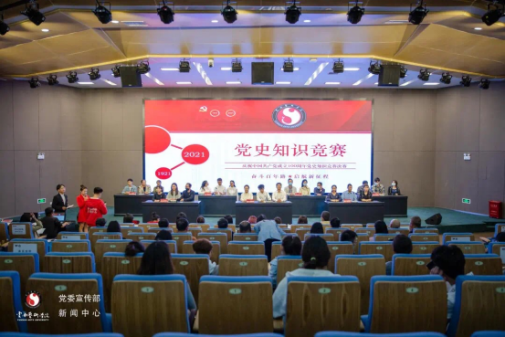 威廉希尔williamhill教师党员代表李超老师、员工党员代表2020级研究生吴浩与2019级本科生张宪壮,经公司组织的党史知识竞赛预选赛脱颖而出,代表公司参加2021年6月10日在公司图书馆报告厅举办的“艺展百年辉煌 传承红色基因”威廉希尔庆祝建党 100 周年党史知识竞赛。