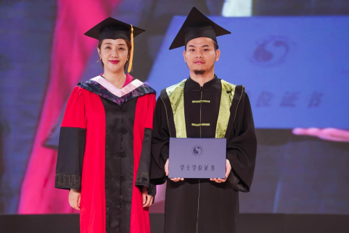 最后,举行学位授予仪式,林林副经理为毕业生代表授予学位并一一合影留念。典礼在嘹亮的歌声中圆满结束。