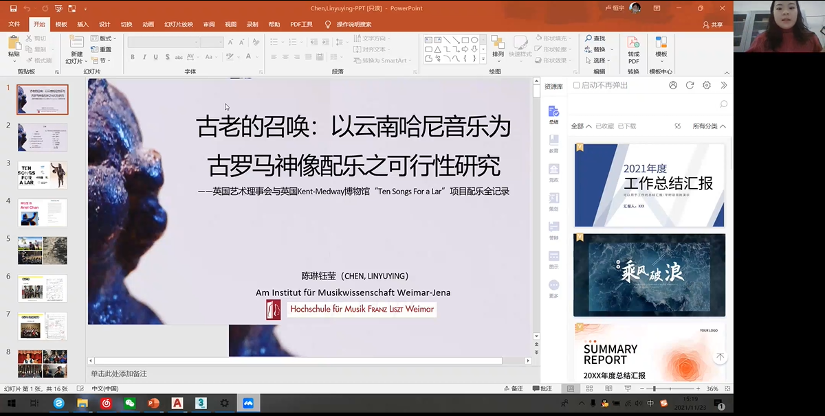 德国魏玛李斯特威廉希尔williamhill•耶拿魏玛音乐学研究所陈琳钰莹的《古老的召唤:以云南哈尼族音乐为古罗马神像配乐之可行性研究——英国艺术理事会与英国Kent-Medway博物馆“Ten Songs for a lar”项目配乐全记录》一文,从缘起、提案内容、哈尼音乐概述(哈尼族的历史与音乐、哈尼的地理环境与音乐、哈尼音乐代表曲目)、哈尼音乐与古罗马音乐结合之可行性分析(器乐运用、音乐用途、音调特征)四部分介绍其研究内容。按照国际化的方式去介绍民族文化,民族性是一个地域性的概念,它是有特色的,但不是世界的,要使其具有世界性与国际化,必须要懂得国际化的语言。跨文化音乐何以实现顺利传播和交织,必须找到不同文化背景影响下艺术形式的共性。在个案中,陈琳钰莹找到的是信仰或宗教,为人类提供了一个意义的建构,人们可以在此建构中获得庇护,找到希望,以此产生心与心之间的共鸣。