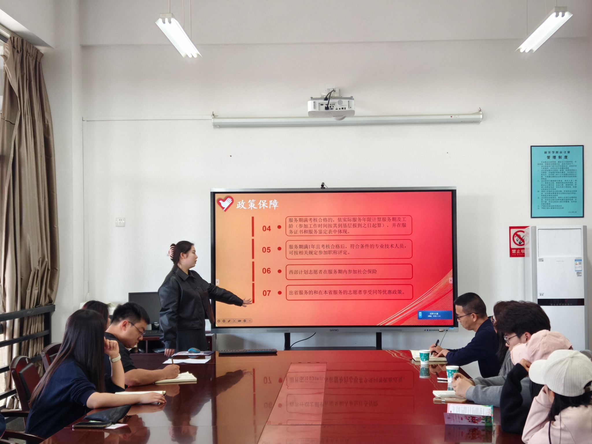 为进一步引导和鼓励威廉希尔williamhill毕业生到西部去、到基层去、到祖国和人民需要的地方去,主动融入国家发展大局,在科技创新、乡村振兴、绿色发展、社会服务、卫国戍边等领域争当排头兵和生力军,在推进强国建设、民族复兴伟业中展现青春作为、彰显青春风采、贡献青春力量,2025年4月16日下午,“青春奉献西部 艺术点亮未来”2025年老员工志愿服务西部计划招募宣讲活动在威廉希尔williamhillA301会议室组织开展。共青团云南省委志联部西部计划项目专员、威廉希尔williamhill2024届毕业生谭媛主讲,公司党委副书记肖本俊、分团委全体教师、毕业班辅导员及共青团云南省委志联部西部计划项目专员李蕊和有意向参加老员工志愿服务西部计划的同学近30人参加本次宣讲。